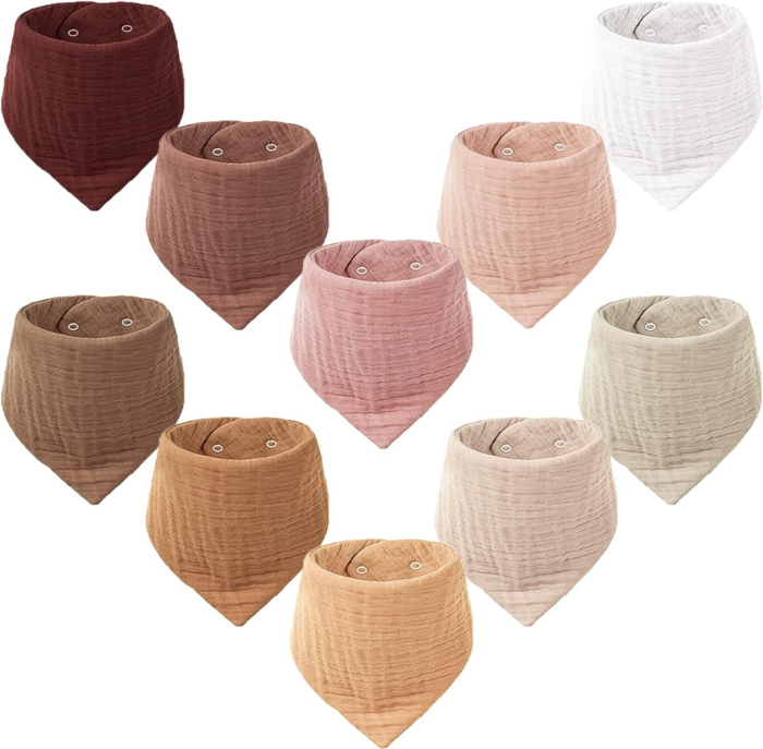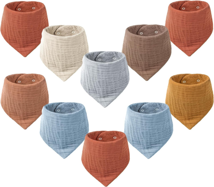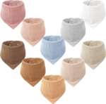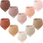 10-Pack Konssy Muslin Baby Bibs: Soft Cotton Bandana Drool Bibs for Boys and Girls