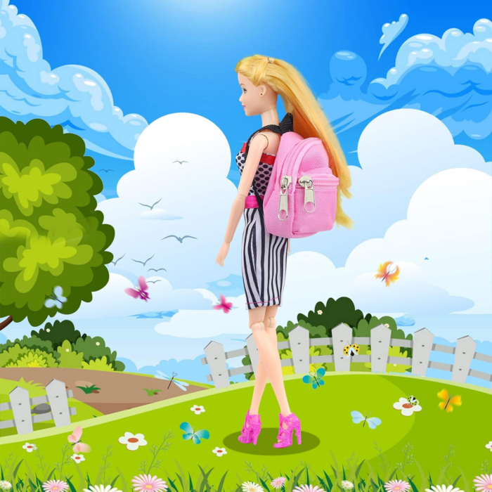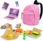 - Premium Material – Laptops, tablets and phones are made of metal. The food and drinks are made of ABS material and the doll’s backpack is made of high quality cloth material.