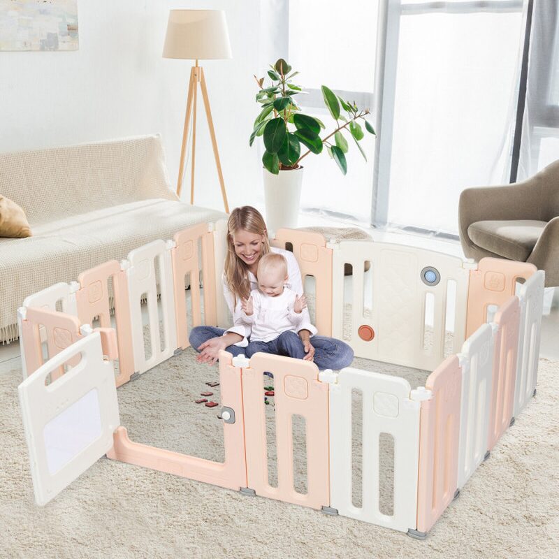 Home Beds and Play Yards 16-Panel Baby Safety Playpen with Integrated Drawing Board