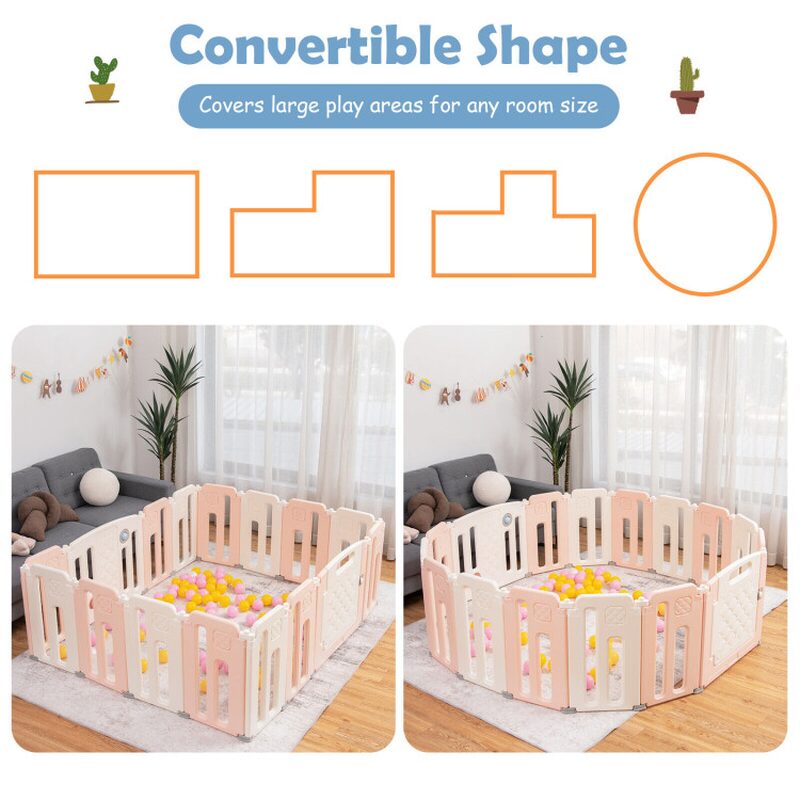 16-Panel Baby Safety Playpen with Integrated Drawing Board
