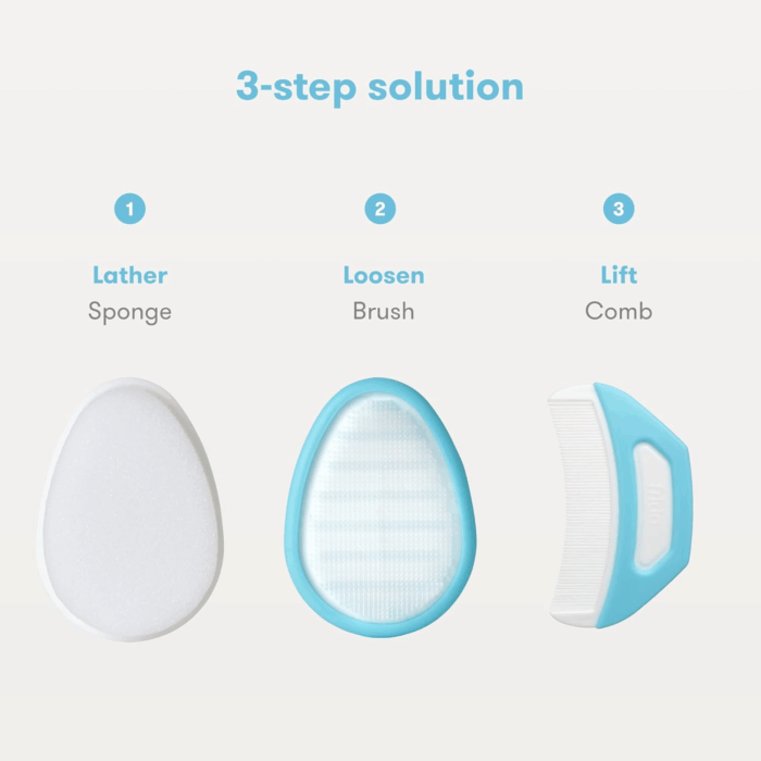 - ALL-IN-ONE CRADLE CAP KIT: The sole 3-step regimen equipped with essential tools for parents to eliminate flakes effectively, perfect for cradle cap treatment.