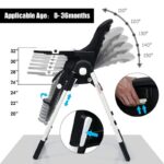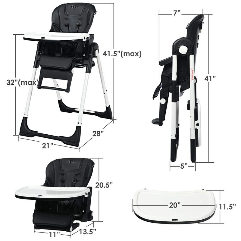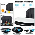 The high chair’s thoughtful design includes seven adjustable height positions and five reclining backrest settings, catering to various table heights and ensuring maximum comfort as your child grows. Cleaning is a breeze with the detachable double trays—one for feeding and the other serving as a play area—both of which are designed for easy maintenance. The high chair requires no installation and features a simple folding mechanism, allowing for quick storage and portability. With built-in wheels, moving the high chair around your home is effortless, making it a practical choice for busy parents.