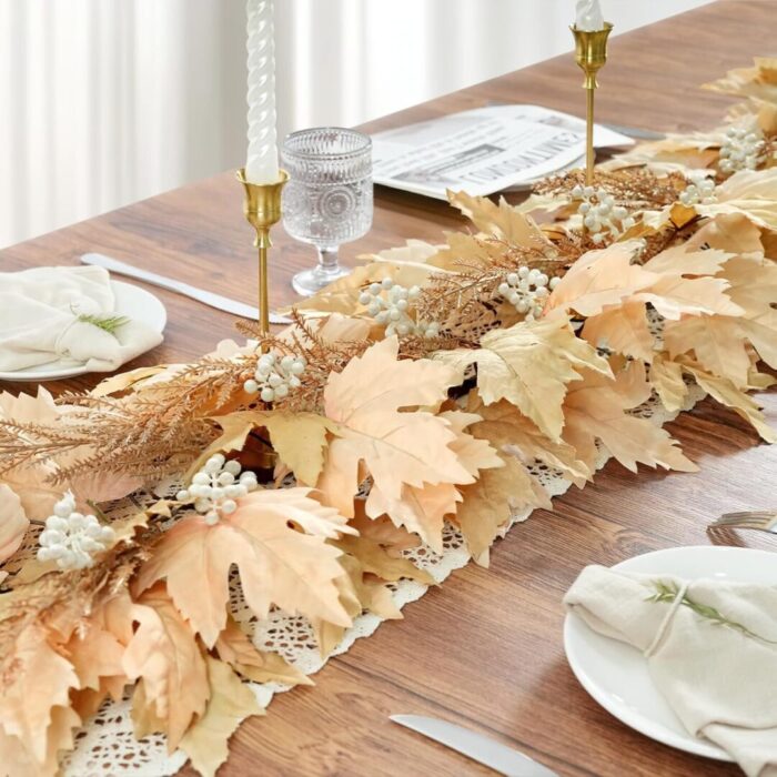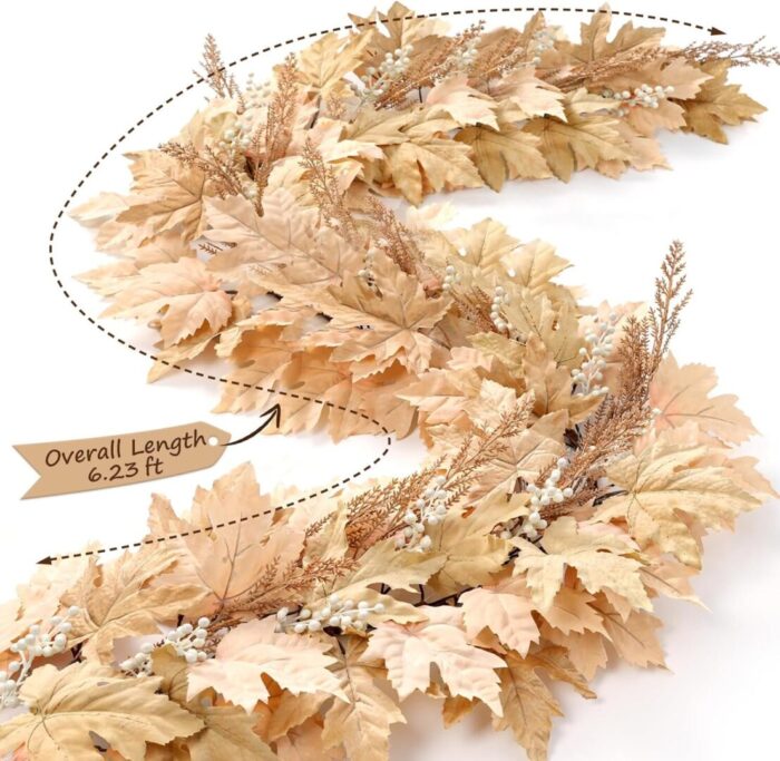 - Neutral Fall Color Palette: Featuring soft beige, caramel, and warm tan tones, this garland seamlessly integrates with various home styles, from rustic to modern, enhancing your seasonal decorations.