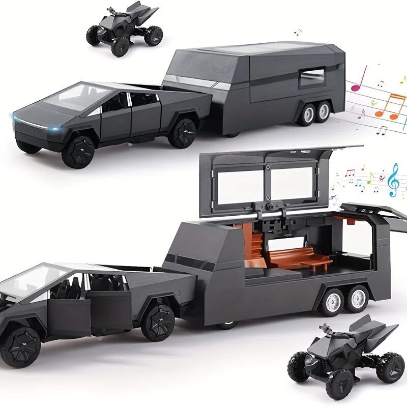 Toy Truck with Trailer – Cast Metal Cybertruck Model Pickup Truck, 1/36 Scale