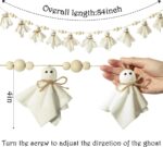 Charming 7Ft Handmade Halloween Ghost Banner with Wooden Beads – Rustic Indoor/Outdoor Decor for Spooky Season