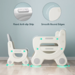 The Children’s Drawing Table and Chair Set is an exceptional art activity set designed for toddlers, combining functionality with safety and style. Crafted from robust HDPE material, this set has undergone rigorous ASTM and CPSIA certification to guarantee its reliability and safety for young users. The smooth, burr-free surfaces and rounded edges of the table and chairs ensure that your child’s delicate skin is protected from injury, making it a perfect addition to any playroom or learning space. This versatile set is suitable for children aged 3 to 8 years, providing a dedicated area for drawing, studying, or dining, fostering creativity and learning in a safe environment.