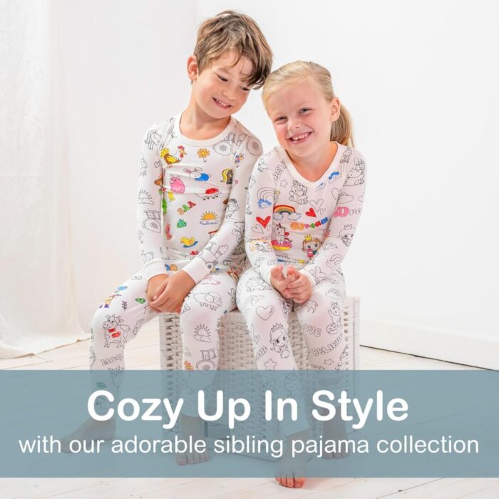 Color Your Own ® Kids Coloring Pajamas – Soft Bamboo Viscose 2-Piece Unisex Set for Creative Fun!