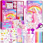 - Complete DIY journal kit with 130 items, including journals, stickers, and art supplies for endless creativity.