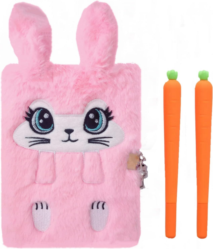 Equipped with a plush cover and a secure locking mechanism, this diary not only provides a comfortable writing surface but also ensures that their thoughts remain private. The included carrot-shaped pens add a playful touch, making writing an enjoyable activity.