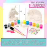 Do you believe in unicorns? We sure do! Discover the magic of your creativity with the It’s So Me! Paint Your Own Unicorns kit! This whimsical painting kit features two ready-to-paint unicorn figurines: 1 unicorn head and 1 full unicorn in front of a rainbow! Use 11 vibrant paints, including shiny metallic and neon pastel colors, to bring each of them to life and make them sparkle with gems, sequins, and fun stickers! Paint intricate designs with the standard paintbrush or use the large sponge brush to easily cover large areas and make fun ombre patterns. Make it sparkle with the included glitter shaker, which keeps you in control of just how much your unicorn will shine! When you’re finished, display your DIY unicorns on a dresser, shelf, or bookcase to transform your space into a unicorn world. Use your unicorns for pretend play and storytelling, or gift them to a unicorn-lover in your life. Painting helps develop hand-eye coordination and encourages creative expression! This at-home art kit is a great screen-free activity to do alone or with groups. It’s perfect for birthday parties (everyone loves a unicorn gift!), sleepovers, play dates, and stuffing Easter baskets! Recommended for ages 6 and up.