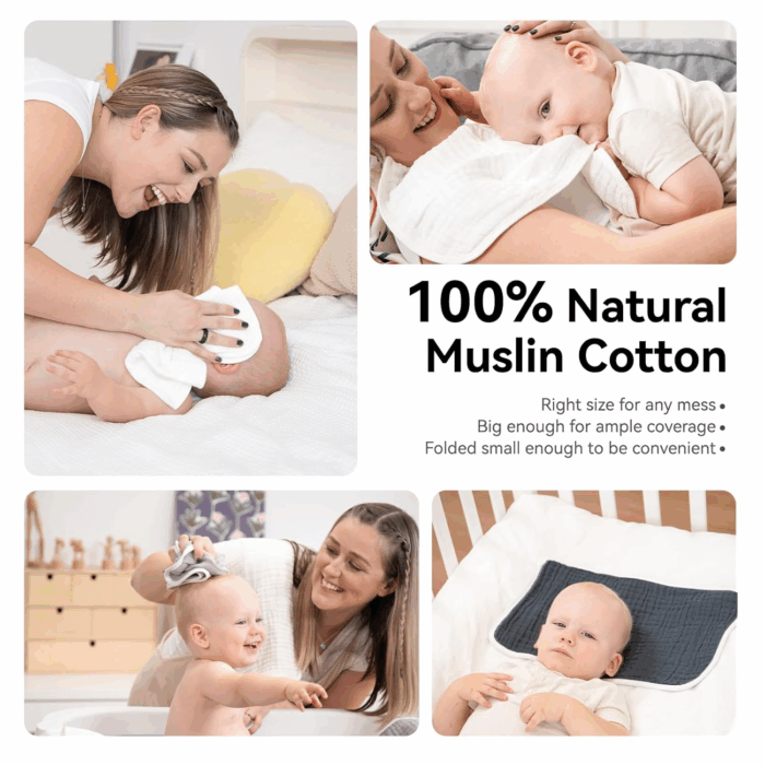 - Super soft, our muslin burp cloths are crafted from premium cotton, providing a gentle touch that is soothing against your baby’s delicate skin.