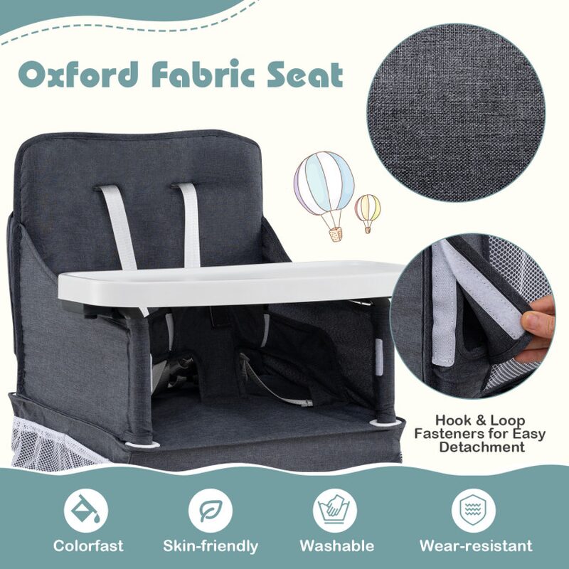 The high chair is constructed with a durable metal frame and equipped with a 5-point safety harness to secure your child safely during use. Its compact design allows it to fold down to a mere 19″ x 6.5″ x 38″, making it ideal for travel and outdoor activities. With the included carry bag, you can effortlessly transport the high chair wherever you go. Additionally, the chair features multiple storage pockets, including a back pocket and four side mesh pockets, perfect for keeping your baby’s essentials close at hand. Whether you’re at home or on the go, this high chair is a versatile solution for feeding and playtime.