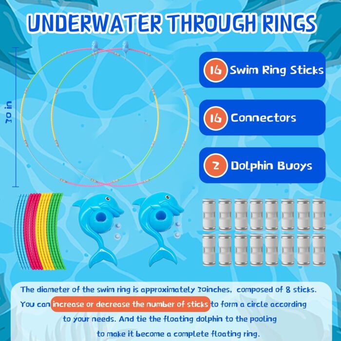 - Creative Design – After assembling the Swim Thru Rings, put the floating rings in the pool. They will stay afloat. so you can go through the ring in just a few seconds. Swim underwater for swim training, children learn to swim, underwater games, Make Obstacle Courses,etc. ideal pool toys for kids ages 4 5 6 7 8 9 10 11 12. Host A Fun Summer Party for Kids
