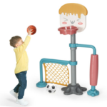 Height Adjustable 3-in-1 Basketball Stand Set with Soccer and Roller Features is the ultimate activity center for your little sports enthusiast. This versatile toy combines a basketball hoop, a soccer goal, and a roller toy, allowing children to explore multiple sports. The unique design not only promotes physical activity but also enhances cognitive skills through play. With the opportunity to engage in basketball and soccer, children can develop essential motor skills, coordination, and social interaction while having fun.