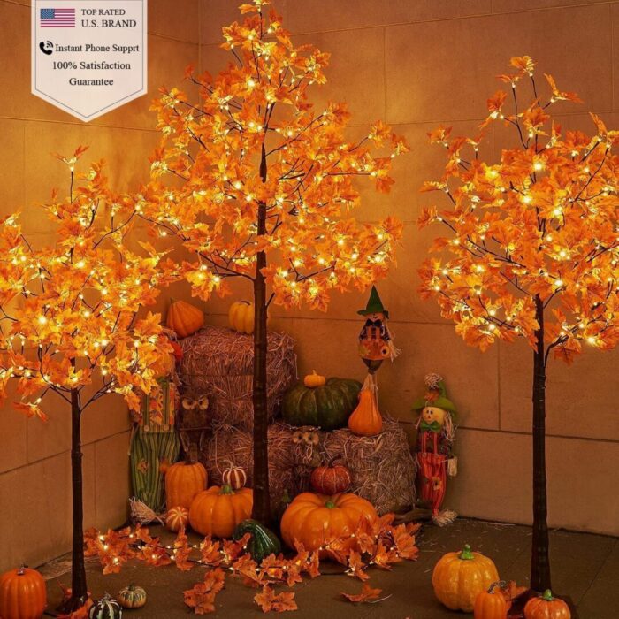 - Transform your indoor and outdoor spaces with the LIGHTSHARE 6FT 120LED Warm White Maple Tree, designed to bring a touch of autumn elegance to any environment. This stunning lighted maple tree features 120 warm white LED lights that beautifully illuminate its natural-looking maple leaves and sturdy brown trunk. Whether you are decorating for fall festivities, holiday gatherings, or simply enhancing your living space, this versatile piece serves as an eye-catching focal point.