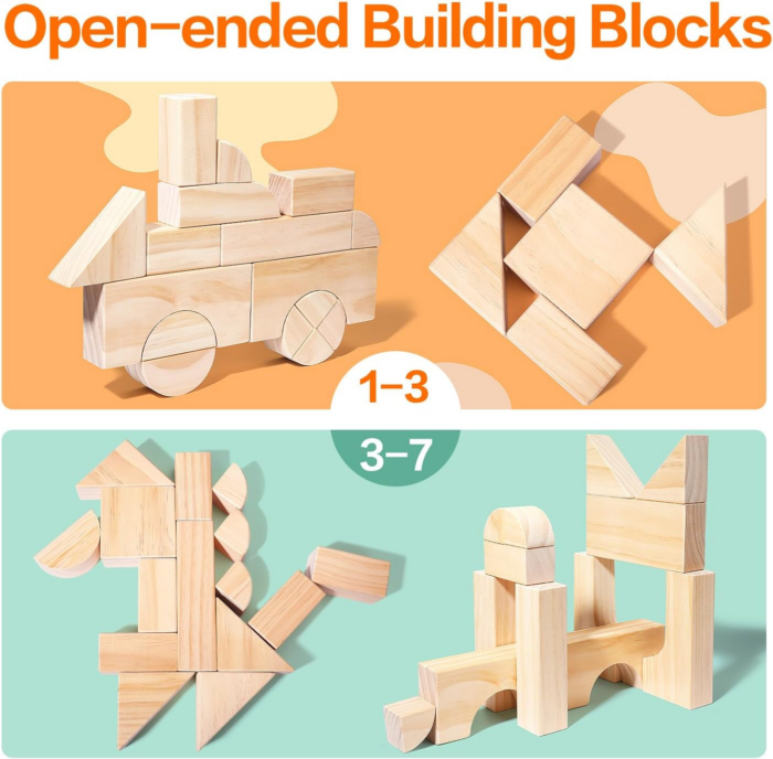 • Great Gift for Ages 2 to 8 : Building blocks have always be an indispensable toy in child growth. If you are looking for fun, learning gifts for kids who are 2-8 years old, this set of wooden toy blocks will be one that the kids & parents thank you for!Makes a great gift for 2- to 8-year-olds, for hands-on, screen-free play