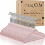 Transform your child’s wardrobe with the Casafield Light Pink Velvet Baby Hangers. Designed specifically for infant and toddler clothing, these hangers provide a chic and practical solution for organizing delicate garments. The non-slip, velvet flocking ensures that even the tiniest outfits stay securely in place, preventing slipping and wrinkling that often occurs with traditional plastic or wire hangers. With an ultra-thin profile, these hangers maximize your closet space, allowing you to store up to 50 percent more clothing in a neatly organized manner.