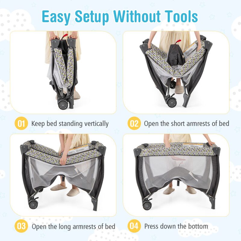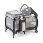 The Portable 4-in-1 Baby Nursery Center Travel Crib is a versatile solution designed to cater to the various needs of your growing baby. This multifunctional nursery center serves as an infant bed complete with a canopy and net, a cozy baby bassinet, a convenient changing table, and an interactive baby playard. The removable changing table alleviates the strain on your back and waist during diaper changes, making it a practical addition to any nursery or travel setup. With its thoughtful design, this nursery center ensures that you have everything you need at your fingertips, whether at home or on the go.