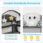 - Comes with entertaining accessories like hanging toys and a multifunctional music box.