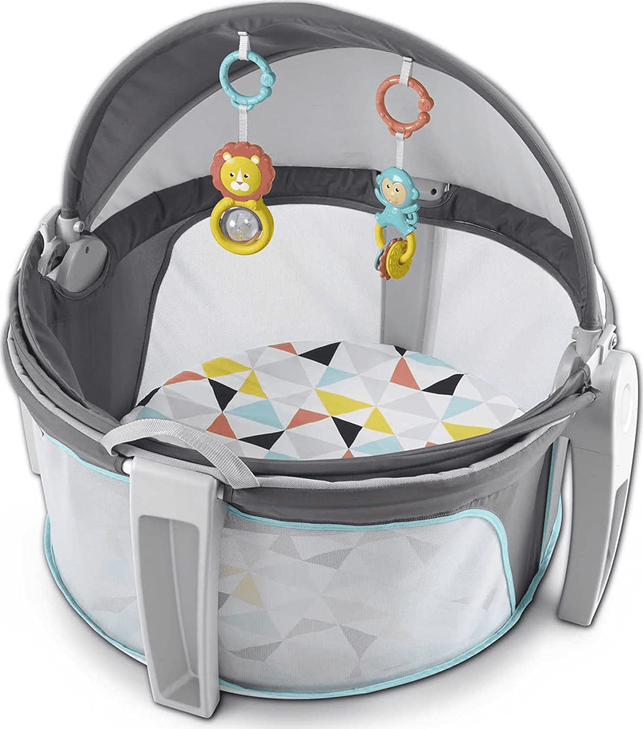 Baby feels right at home in the Fisher-Price Portable Baby Dome with Developmental Toys & Canopy. This 2-in-1 portable baby bassinet and play space is perfect for use at home, outside, or while traveling. It can be used indoors or out, and the adjustable canopy protects your baby from the sun’s rays (UPF 20) and bugs.