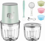 This mini food processor features a one-touch operation, allowing you to easily chop food without having to use your hands. Simply fill the glass container with your ingredients, lock the cover, press the power switch, and the chopper will evenly shred the food in 5-30 seconds. The transparent glass container allows you to see the situation of the food at any time and get the desired food size. The blades of the chopper are made of food-grade 304 stainless steel, which is more resistant to rust and corrosion. The glass containers are BPA-free, easy to clean, and safer compared to plastic bowls. This makes the NUNET baby food chopper ideal for making baby food.