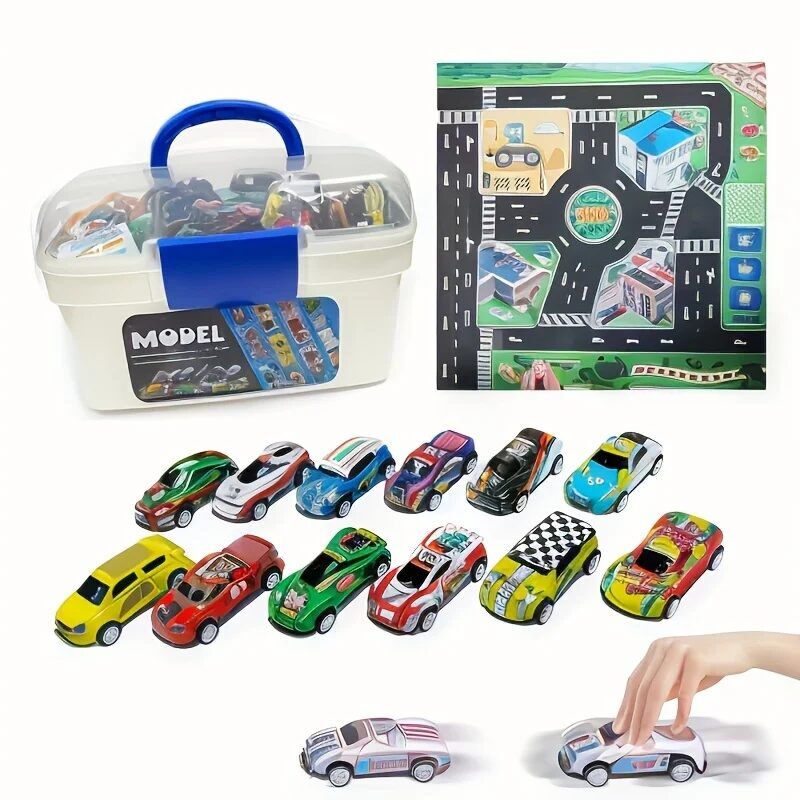 50-Piece Diecast Toy Car Set with Storage Case, Foldable Play Mat, and Return Force Function – Durable, Colorful, Educational Gift for Kids 3+