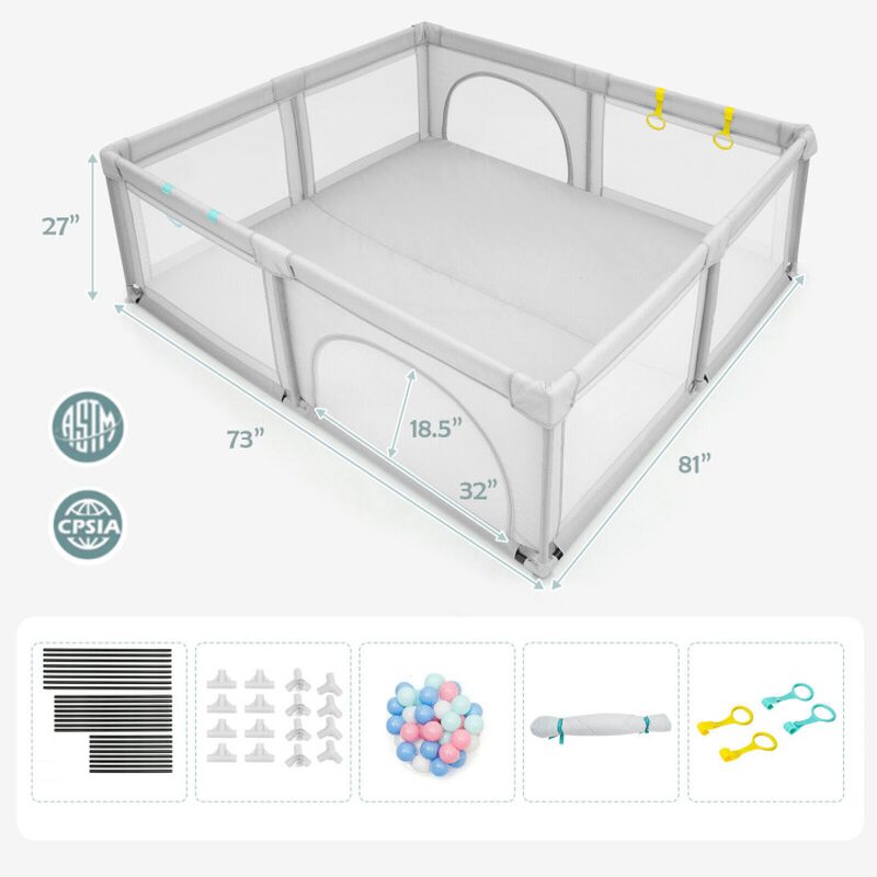 • ● Generous dimensions of 81″ (L) x 73″ (W) x 27″ (H) for ample play space