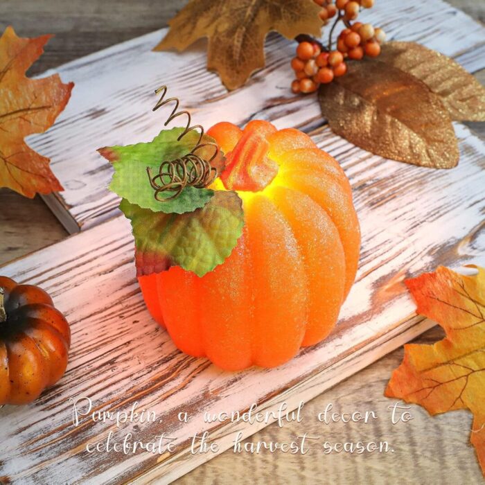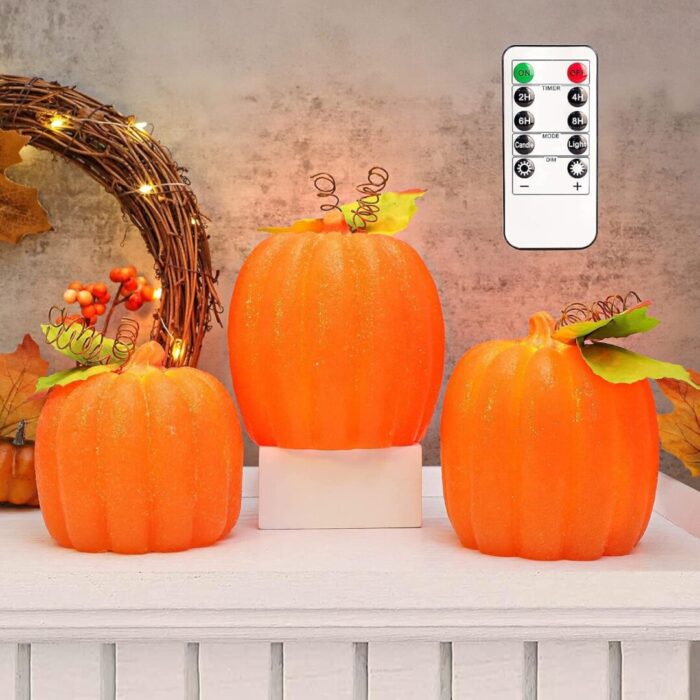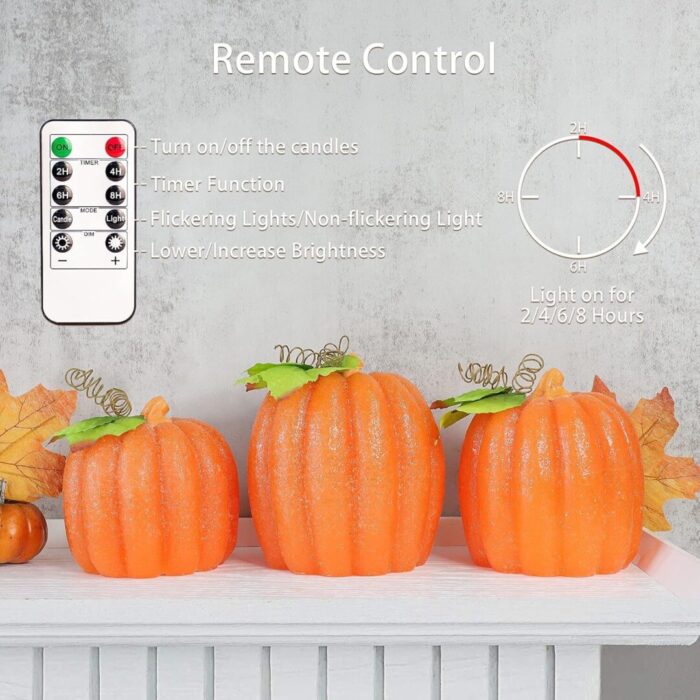 - Enhance Your Autumn Decor with Exquisite Pumpkin Candles — The Set of 3 Crystal Club Fall Pumpkin Flameless Candles is designed to elevate your home decor for the fall season. Crafted from real wax and adorned with a glittering surface and lifelike simulated leaves, these candles create a stunning ambiance perfect for Thanksgiving, Halloween, or any autumn celebration. Their realistic design adds a touch of elegance to any space, making them an ideal centerpiece or accent piece for your living room, dining area, or porch.