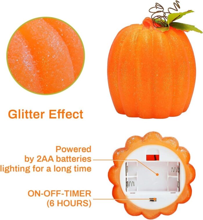 - Realistic glittering pumpkin design crafted from real wax for an authentic autumn feel.