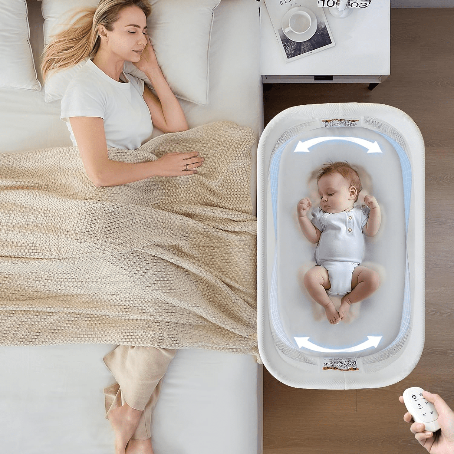 The Smart Motion Rocking Bassinet by VaVaSoo is designed to provide a soothing and comfortable sleep environment for your baby. With its electric rocking feature, you can choose from three different speeds to mimic a mother’s gentle embrace, helping your baby fall asleep faster. This innovative function eliminates the need for manual rocking, allowing you to have your hands free for other tasks. VaVaSoo understands the challenges of parenting and is committed to making it easier for you.