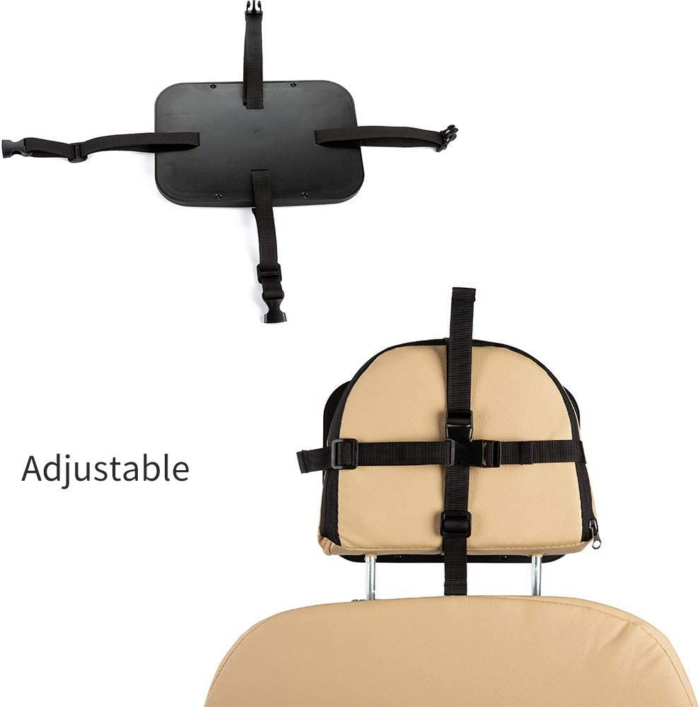 The mirror is fully adjustable and can be easily attached to the headrest in either a vertical or horizontal position, making it suitable for any vehicle seat. It is designed with a steady construction and a durable strapping system, ensuring that the mirror stays firmly in place even on bumpy roads. The mirror is also easy to install, requiring no tools.