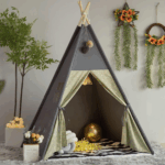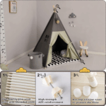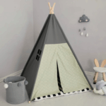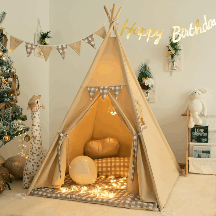 This teepee tent serves as both a fun playhouse and a stylish room decoration, easily complementing any home decor.