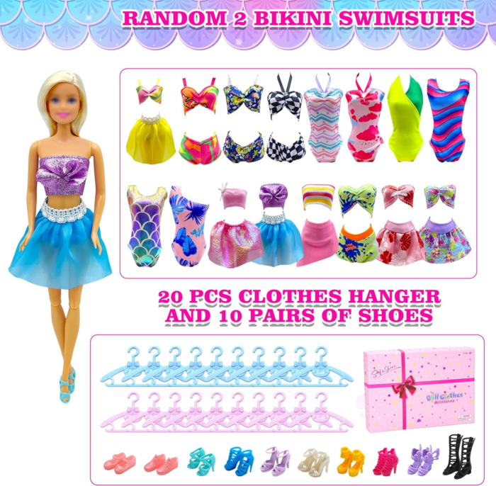 – Included: 20 sets of different doll clothes and 30 pieces of doll accessories (Doll not included)