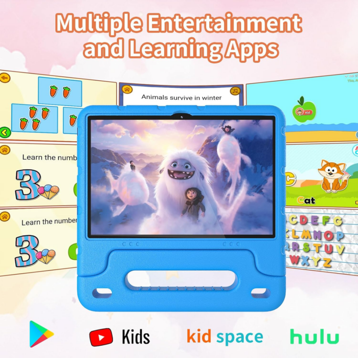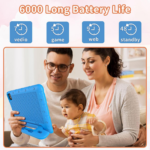 The Ultimate Kids Tablet is designed to provide a safe, educational, and entertaining experience for children. Featuring the latest Android 14 operating system, this 10-inch tablet is powered by a quad-core processor, ensuring smooth multitasking capabilities. With 6GB of RAM and 64GB of internal storage, which is expandable up to 1TB via microSD, this tablet is perfect for streaming videos, studying, video chatting, and enjoying eBooks. Its eye-protecting 1280×800 IPS Full HD touchscreen offers vibrant colors and wide viewing angles, making it an ideal companion for both learning and fun.