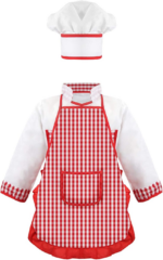 – 11-piece dress-up trunk with 4 different role play costumes: pirate, chef, construction worker, and policeman.