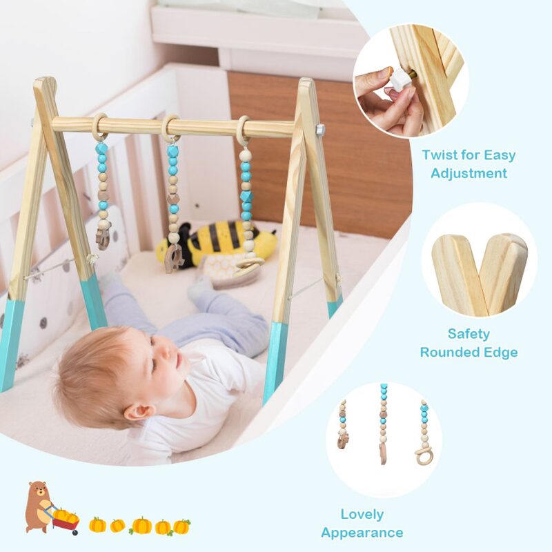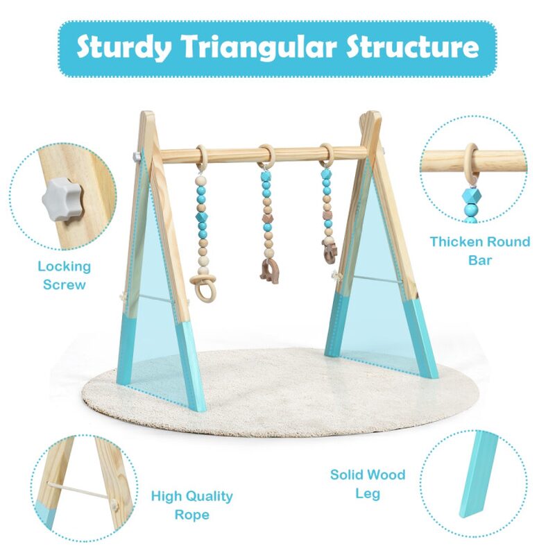 This activity center is not just a plaything; it serves as a developmental tool that aids in building strong motor skills and enhancing hand-eye coordination. Featuring three adorable hanging toys, the gym encourages babies to reach, grasp, and interact, promoting cognitive growth and sensory stimulation. The unique triangular construction of the frame provides exceptional stability, ensuring that the play gym remains secure during use. When playtime is over, the gym can be easily folded and stored away, making it a convenient addition to any home.