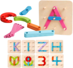“Wooden Letter and Number Activity Set for Preschoolers – Educational Pegboard Shape Sorter Toy for Boys and Girls”