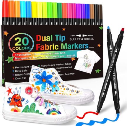 20-Color Dual Tip Fabric Markers – Permanent Paint Pens for Kids & Adults – Perfect for T-Shirts, Sneakers, Canvas, and More!