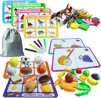 Wiznobliss Sorting Toys for Toddlers,3 in 1 Learning Education Toys Sorting Games Cutting Fruit Toys Toddler Coloring,Fine Motor Montessori Preschool Classroom Sensory Toys for 2+ Year Old.